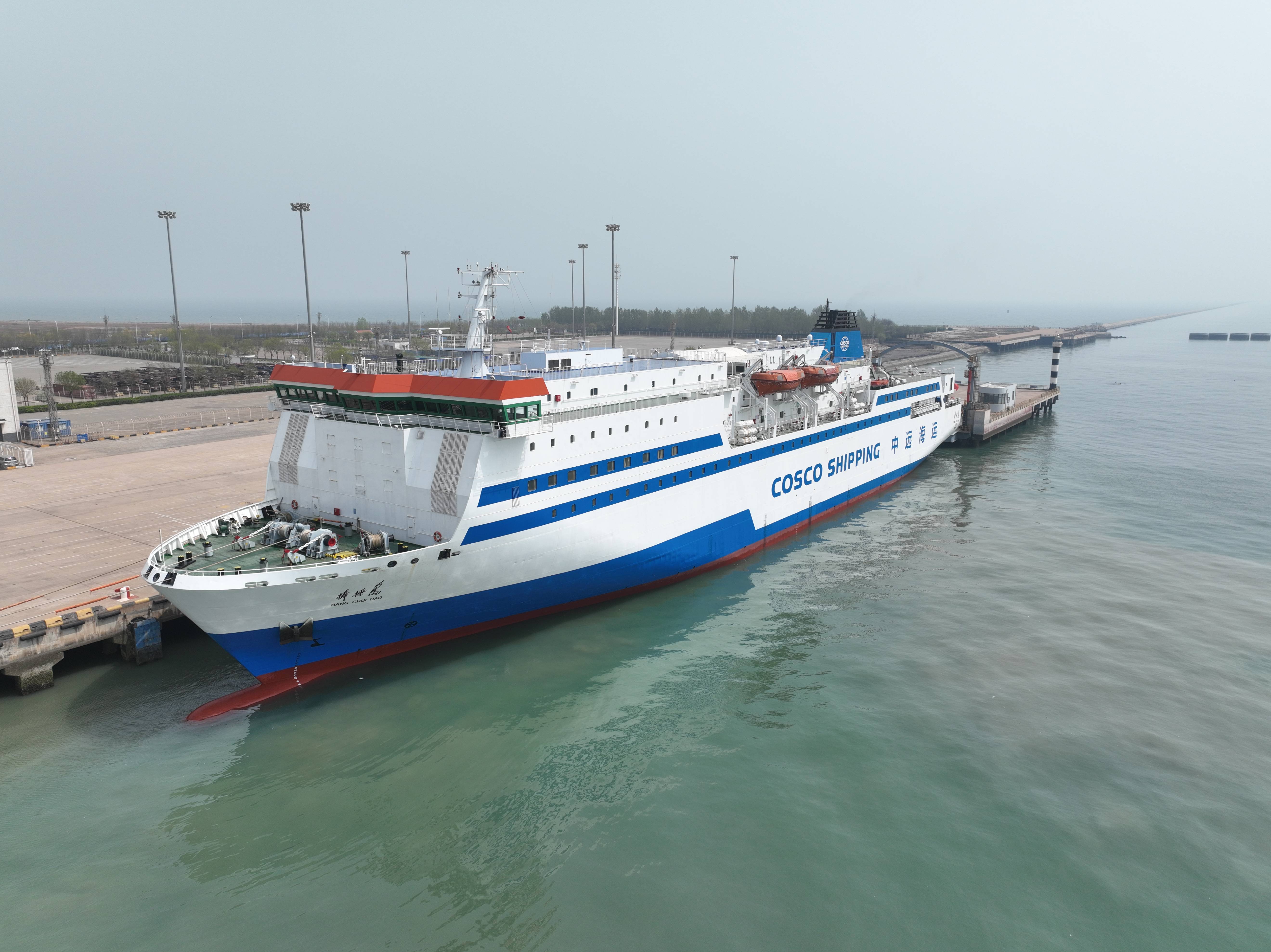承担此次复航任务的“棒棰岛”号客滚船,是中远海运客运有限公司的明星船舶。该船总吨位达15560吨,船长134.8米,宽23.4米,全船可搭载旅客937人,车辆约200辆,舱位选择包括单人间、四人间、六人间等。